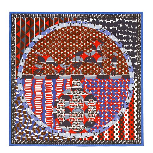 An ex-libris is a vignette engraved with a motif, a phrase or initials, which book-lovers stick in their books in order to personalise them. The ex-libris of ?mile Herm?s, grandson of the Parisian house?? founder, takes its inspiration from a drawing by the French painter Alfred de Dreux, featuring a groom and carriage, synonymous with the romantic era of Paris. The image draws strength from its simplicity, and has been interpreted numerous times over the years. In this scarf, the illustrator Louis Boquin dresses it in motifs normally used for silk ties, in a play of geometrical lines juxtaposing circles,…