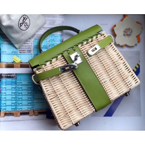 Hermes Green Picnic Kelly Mini 20cm Wicker Bag