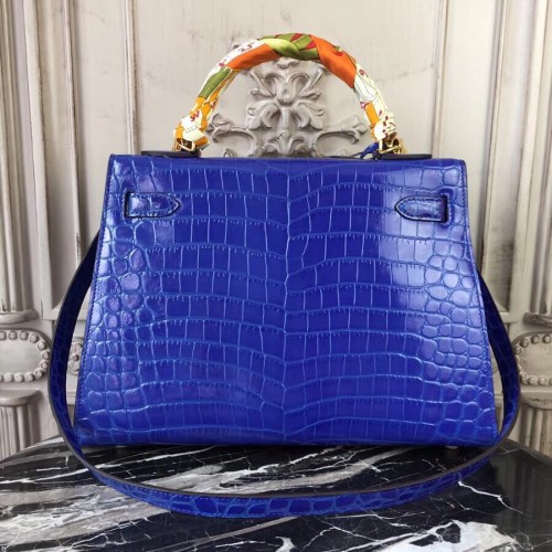 Hermes Kelly 32cm Bag In Blue Electric Crocodile Leather